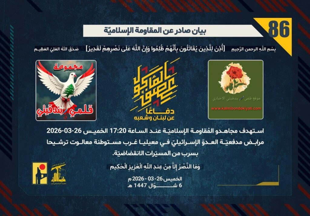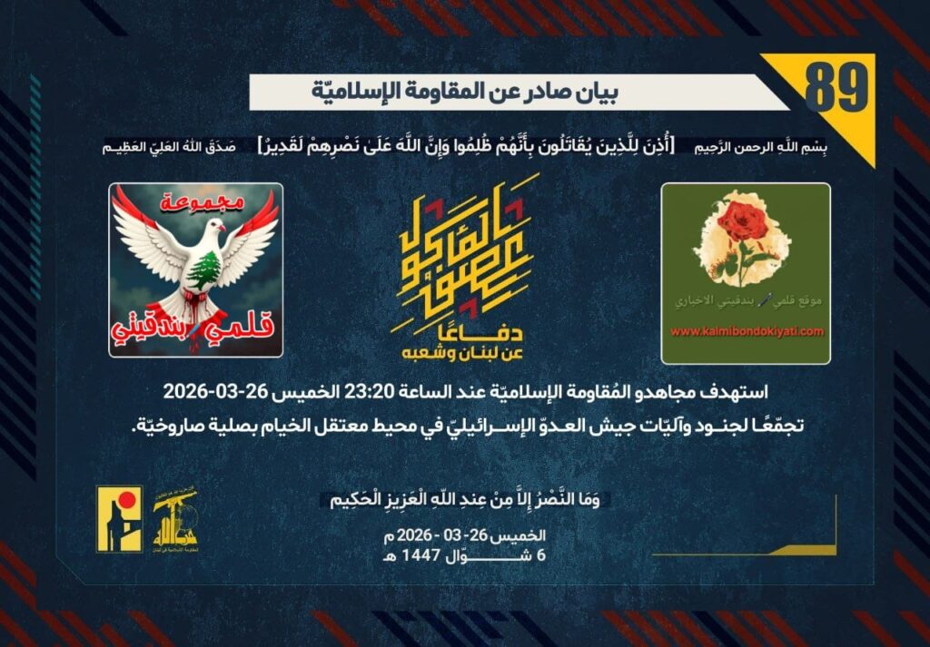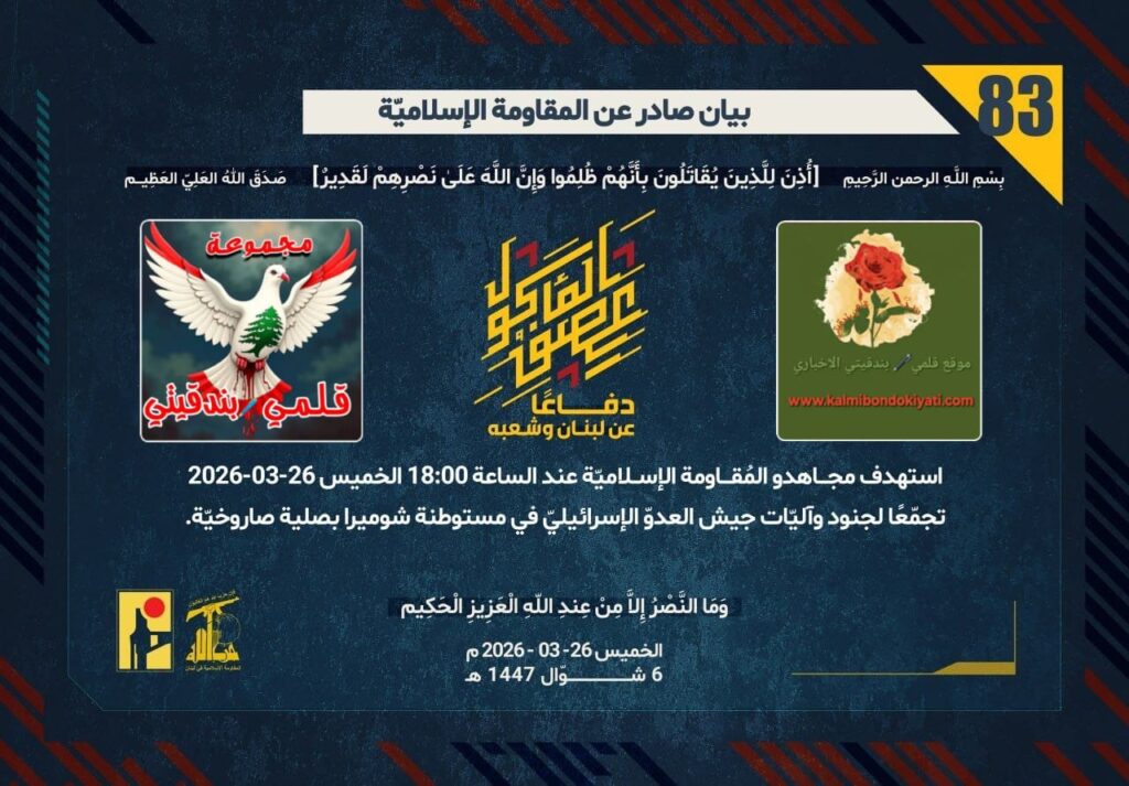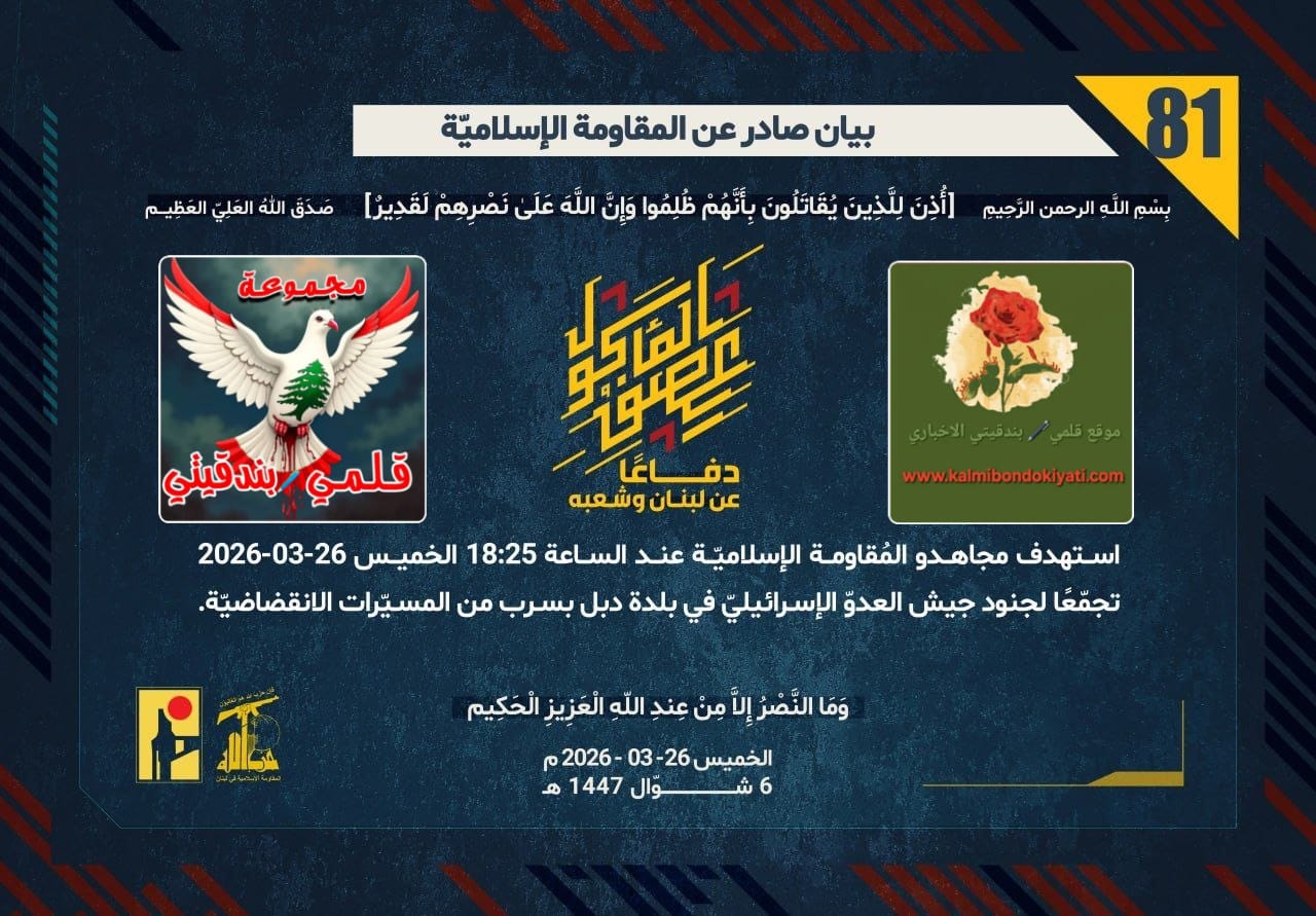 ูุณ 26-03-2026 ุจูู ุชุญุชููุฉ ุชุชุจุน ูุฌูุด ุงูุนุฏูู ุงูุฅุณุฑุงุฆูููู ูู ู