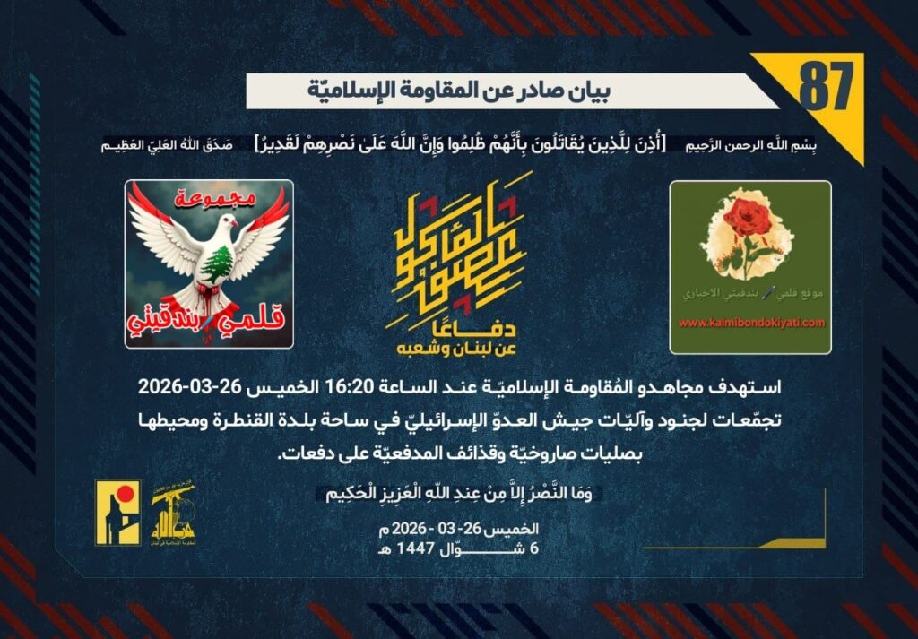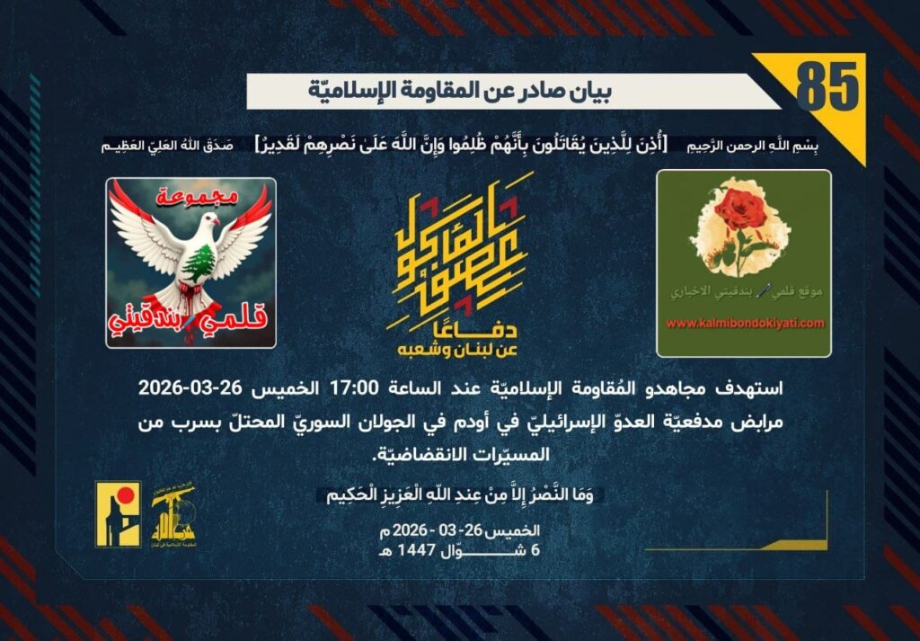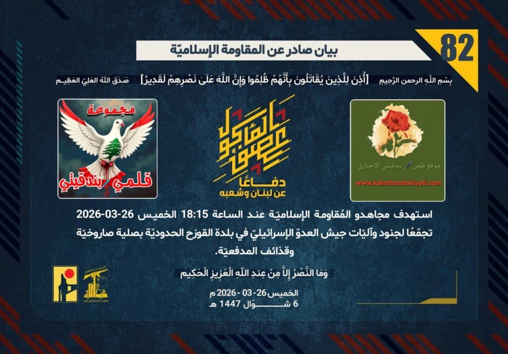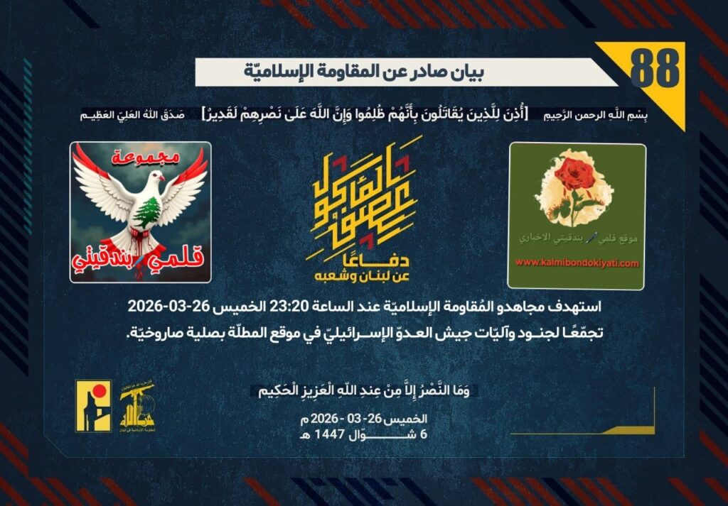 ูุณ 26-03-2026 ุจูู ุชุญุชููุฉ ุชุชุจุน ูุฌูุด ุงูุนุฏูู ุงูุฅุณุฑุงุฆูููู ูู ู