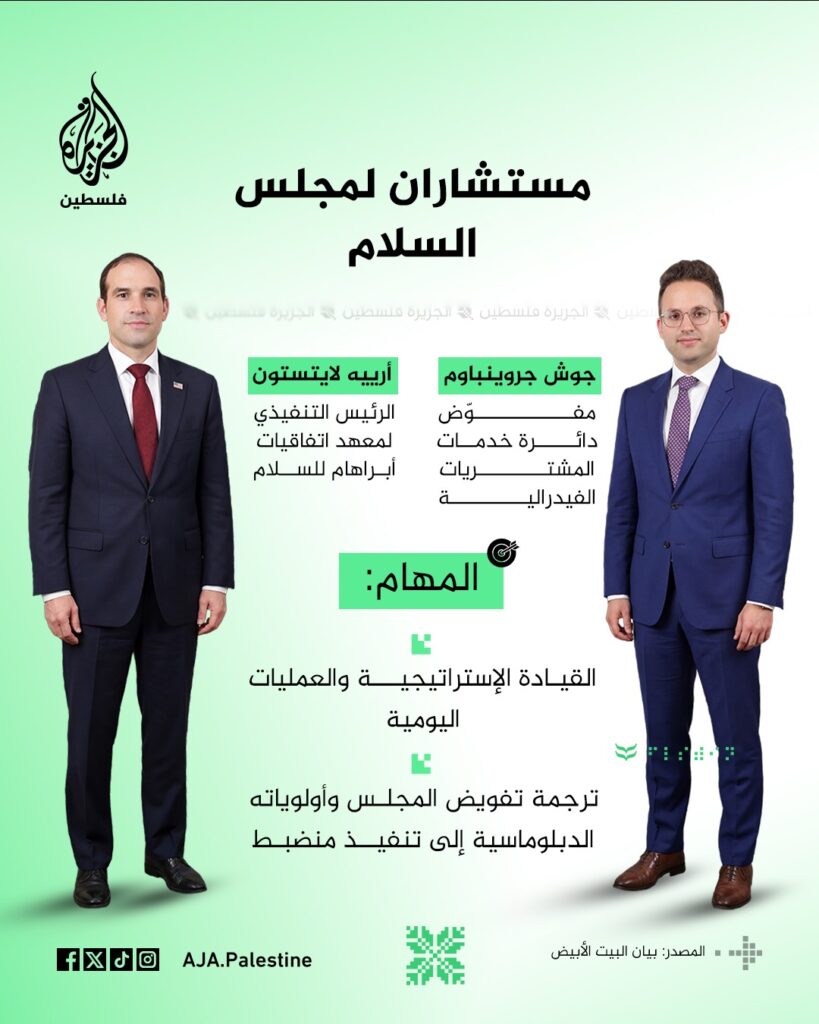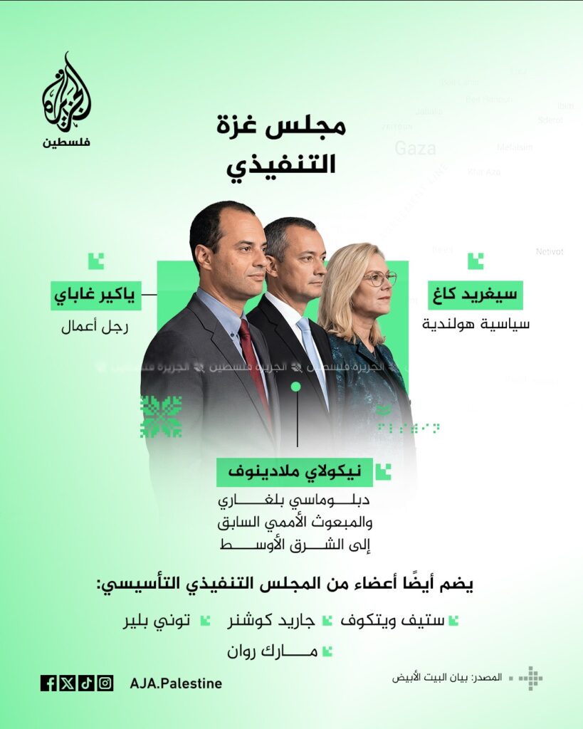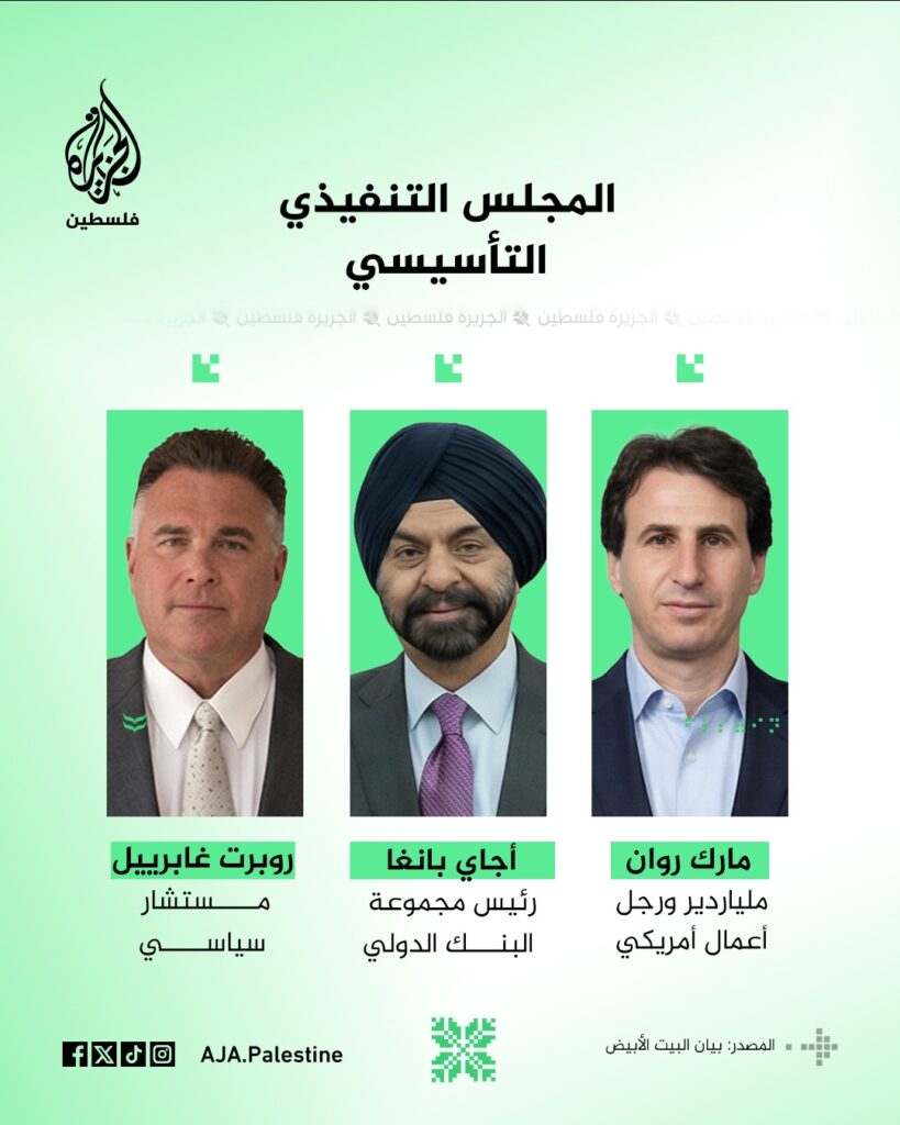 نشرت قناة الجزيرة فلسطين الصور التالية للتعرف على أعضاء مجلس السلام لإدارة غزة بعد أن أعلن البيت الأبيض عن تشكيل مجلس السلام في غزة ضمن هياكل تنفيذية وإشرافية لإدارة المرحلة الثانية في غزة.
