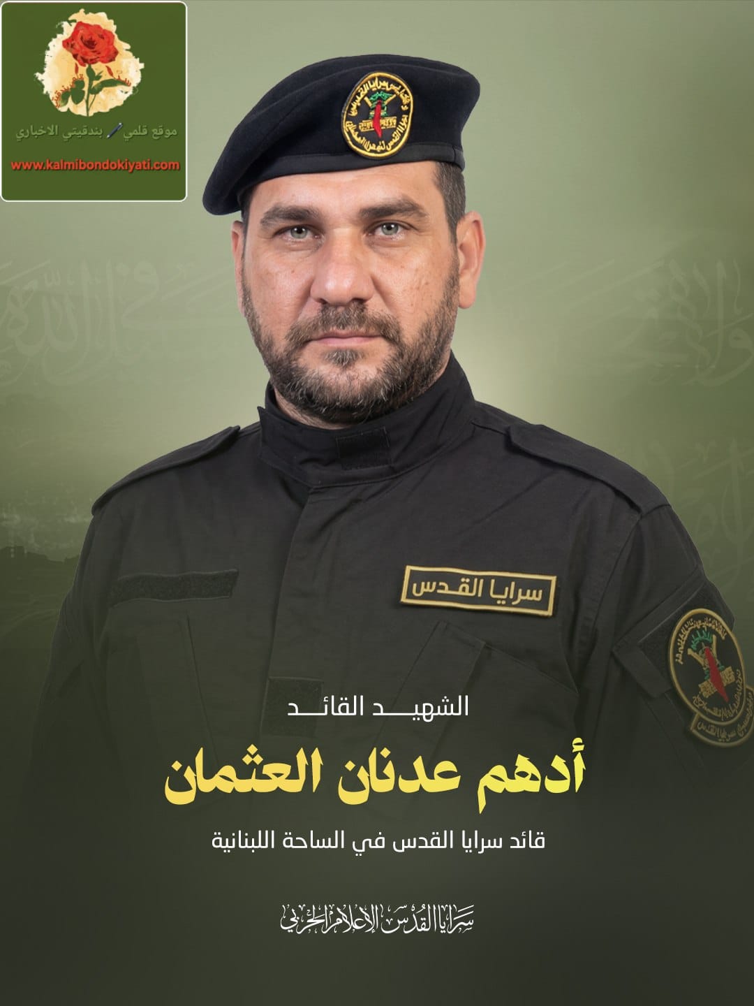 زفت سرايا القدس “الجناح العسكري لحركة الجهاد الاسلامي” قائد سرايا القدس في الساحة اللبنانية الشهيد القائد أدهم عدنان العثمان من مخيم عين الحلوة جنوب لبنان